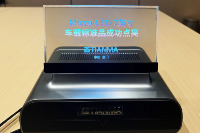近日,天馬新型顯示技術研究院(廈門)有限公司,繼全球領先的G3.5 Micro-LED產線全制程貫通后,首款車載標準化產品——Micro-LED 7英寸車載標準品成功點亮!這款產品集高透明度、可拼接、高